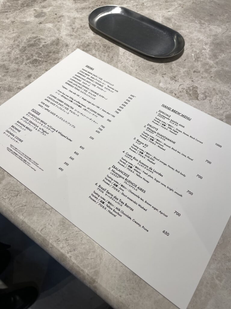フードメニューは金沢でクロワッサンやカルダモンロールがありますが、用賀ではそれらの代わりにバナナブレッドとブラウニーになっていました。